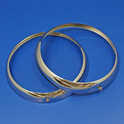 Jaguar XK120 headlight rim. Chrome on spun steel. For use with Lucas PF770 type lights. 8" screw fitting for standard units. Price per rim.
