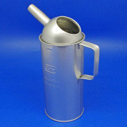 Two litre high quality tin plate oil measure. Very stable with anti surge top and funnel shaped spout. Dimensions 280mm tall, 112 mm diameter, spout 65mm long.