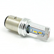 High quality CSP 1860 LED upgrade for Marchal type bulbs with a double contact BA21D bulb base. With integral heatsink. Accepts 11 to 60V input voltage - optimised for 12V, negative earth systems....
