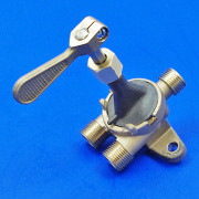 Two way tap, 1/4" BSP thread for solder type nipple connection. lever on position when handle is in line with outlet. Order solder type nut and nipples as required separately.