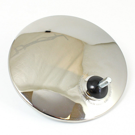 Round shape mirror head. 107mm diameter stainless steel mirror head offered with either CONVEX or FLAT glass. Offered with a choice of four designs of chrome stem - please make your selection below, along with flat or convex glass. All four arms mount through a 16mm hole in the panel and protrude 50mm under.