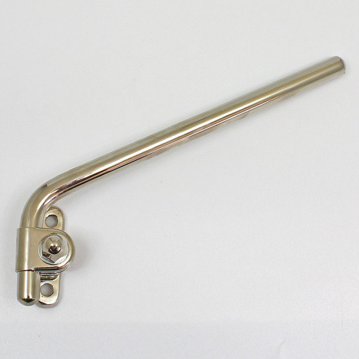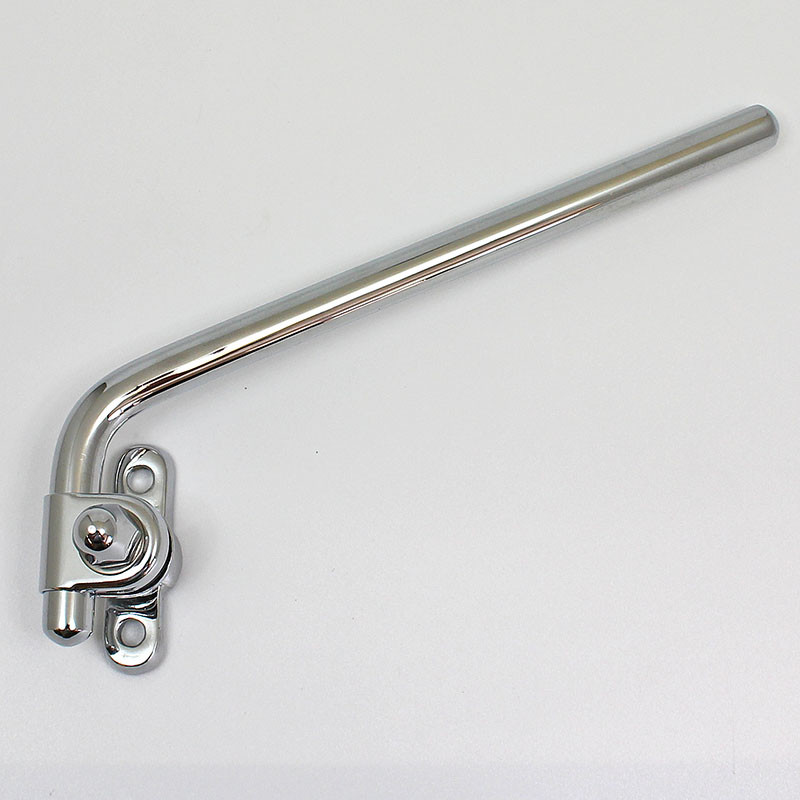 Adjustable 1/2" (12.7mm) cranked rod mirror mounting arm. Base dimensions 59mm x 22mm, with two 6.5mm approx. diameter mounting holes with centres 39mm apart. Mirror arm approximately 190mm long. Brass construction, available in polished brass, chrome or nickel plated finish.