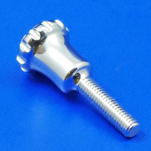 Daisy head headlamp rim screw for the Lucas L140 & L150 headlamps, overall length 36mm (head 18mm, thread 18mm) head diameter 15mm tapering down to 9mm, with a 2BA thread. Chrome plated brass.