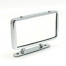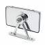 Rectangular chrome on brass rear view mirror with cast, chrome on bronze triangular mounting bracket, popular on some early MG models. CONVEX glass, Rear of mirror head case stamped Desmo above the mounting stud. Mirror head 118mm wide x 67mm tall, fitted by a single stud to the triangular mounting bracket that is similar in design to the early Lucas style mount - with a flat base plate 95mm long x 15mm wide with two mounting holes at 75mm centres. Overall height from bracket base to top of the mirror head 90mm.