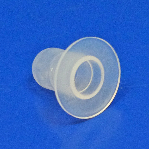 Plastic top hat badge fixing cup, fits into 5/16" panel hole and accepts an 1/4" pin with 5/8" flange.