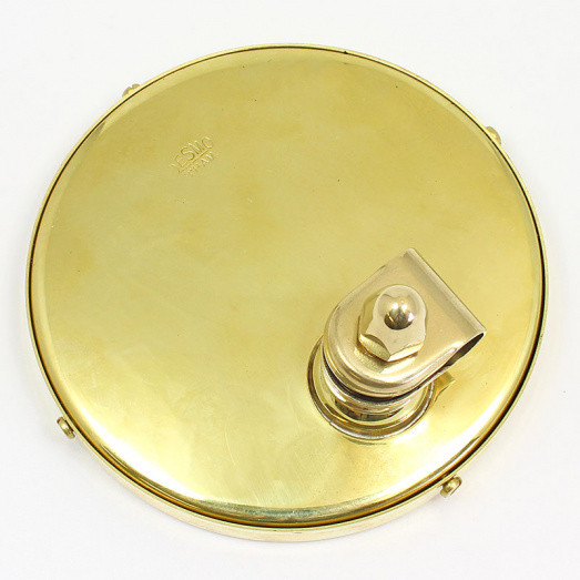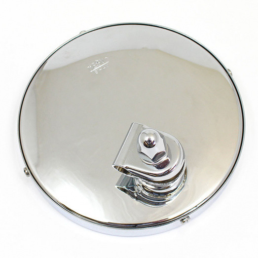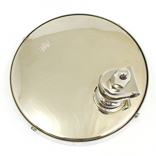 Round mirror, 4 3/4" (120mm) in diameter, stamped Desmo on rear of case. Supplied with convex or flat glass. Fitted with a 3/8" (10mm) mounting clamp as standard. All brass construction, available chromium or nickel plated, or in polished brass finish. This handmade British mirror is very similar in size and appearance to the Desmo No.52PI and Lucas 140 model mirrors.