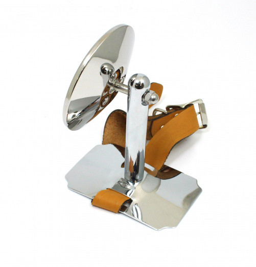 Spare wheel mounted rear view mirror, chrome finish, 115mm diameter flat glass, complete with tan leather strap 560mm long. Longer leather straps are available if required at an extra cost - please enquire.