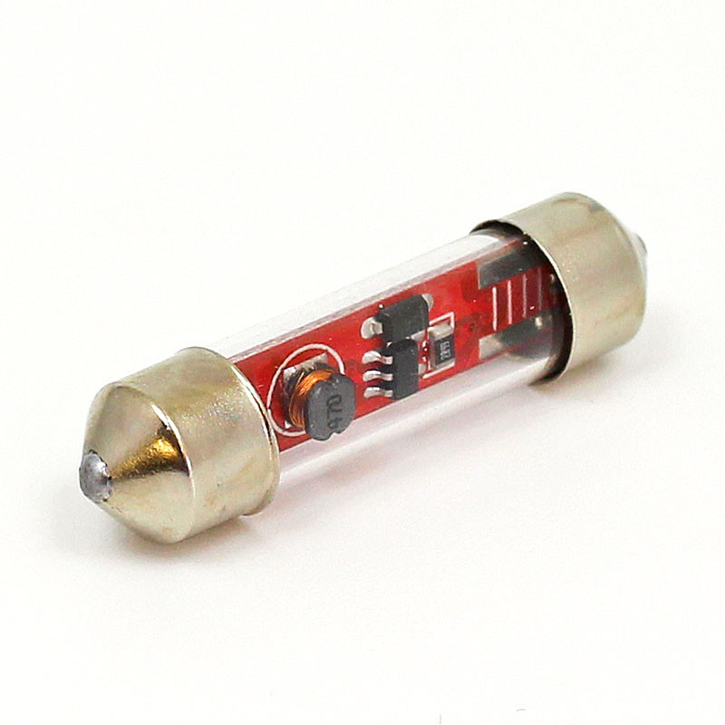 8 x 36mm 12V Festoon bulb - equivalent fitting to B257B though brightner in testing than 21W B273B. 180 degree light from 6 x 4014 LEDs. Tubular glass cover for LED section. Compatible with either negative or positive earth systems. Accepts 10 to 30V input voltage. Very low current draw - over 75% less than incandescent and halogen bulbs so great for low powered electrical systems. 6000K bright, white colour temperature.