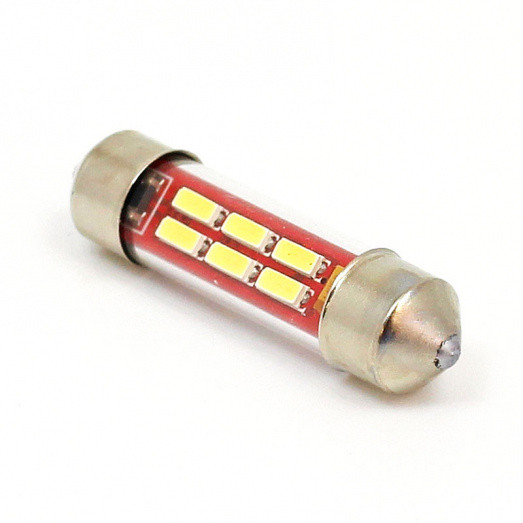 9 x 39mm 12V (& 24V) Festoon bulb - equivalent fitting to B239B but brighter than 21W B273B. 180 degree light from 6 x 4014 LEDs. With tubular glass cover. Input voltage 10 to 30V. Compatible with either negative or positive earth systems. Very low current draw - over 75% less than incandescent and halogen bulbs so great for low powered electrical systems. 6000K bright, white colour temperature. 8.5mm LED section diameter. For other bright LED options with a 39mm fitting please see B273LEDW-C and B273LEDW-E.Â