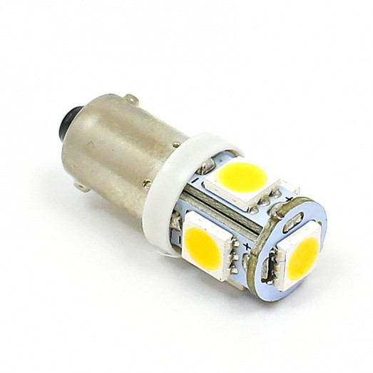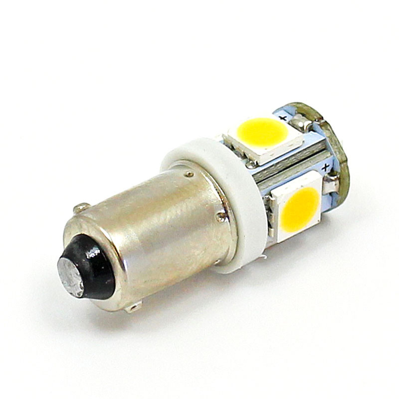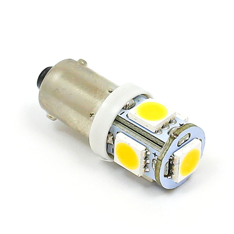 5 x 5050 SMD 80 Lumen LED 6 Volt multi-directional, warm white lamp. LED upgrade and direct replacement for B293 and B951. BA9S base. Proving brighter than c6W incandescent bulb in testing. Compatible with either negative or positive earth systems. Very low current draw - over 75% less than incandescent and halogen bulbs so great for low powered electrical systems. 3000K warm, white colour temperature. 29mm total bulb length, 12mm LED section diameter. For a bright white light please see part number B293LEDW-A, for less bright LED options please see part number B293LEDW-B and B293LEDWW-B