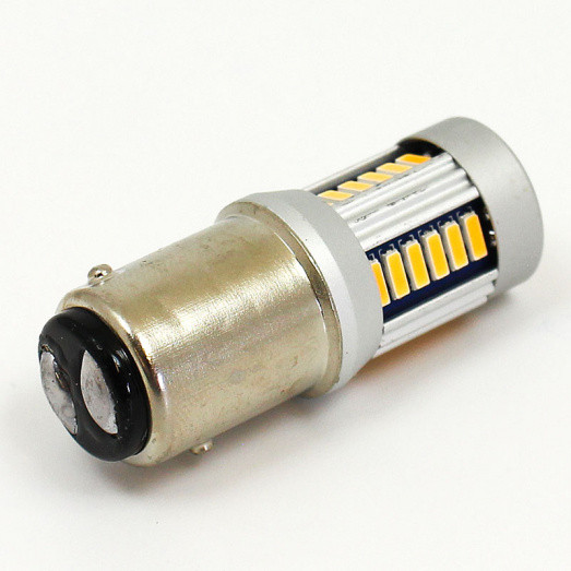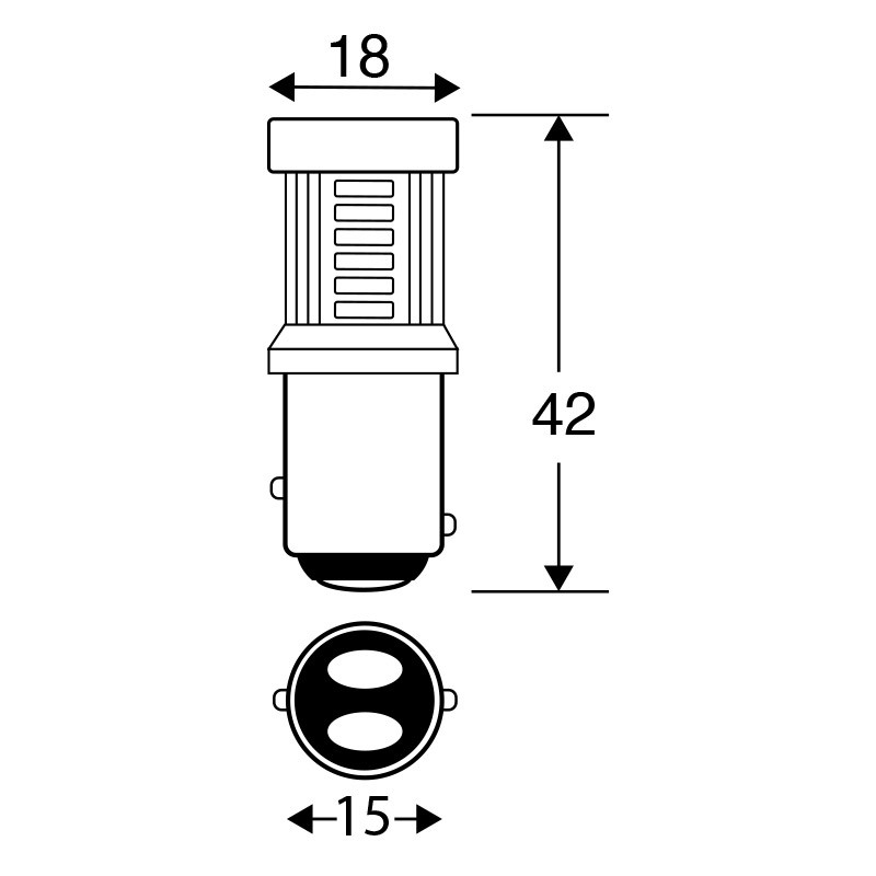 30 x 4014 SMD LED BAY15D 6 Volt multi-directional 600 Lumen warm white lamp. Combined Stop & Tail (Brake & Rear) functionality. LED option for B384 double filament type bulb with the common BAY15D offset pin, double contact base. In testing, comparable in brightness to B384XB and B3214B type 18/5W bulbs. NEGATIVE EARTH ONLY! Very low current draw - over 75% less than incandescent and halogen bulbs so great for low-powered electrical systems. 3000K warm, white colour temperature. Maximum diameter 18mm, total bulb height 43mm. For a bright white option please see B384LEDW and for red LED options please see B384LEDR and CSTLEDWWR-6NY (neg earth) or CSTLEDWWR-6PY (pos earth)