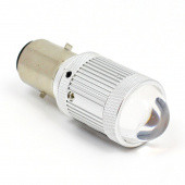 High performance CSP 1860 LED upgrade for Bosch and Lucas headlamp bulbs with the BA20D base. Integral heatsink. Accepts 5 to 9V input voltage - optimised for 6V, negative earth systems. High and low beam - 1600 Lumen high beam, 1600 Lumen low beam - with a soft beam pattern. In testing, brighter (LUX measurement at fixed distance) than BT527 (45/40W).