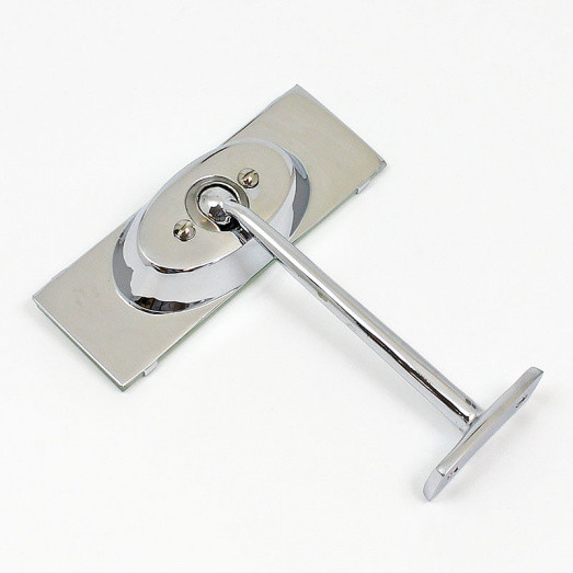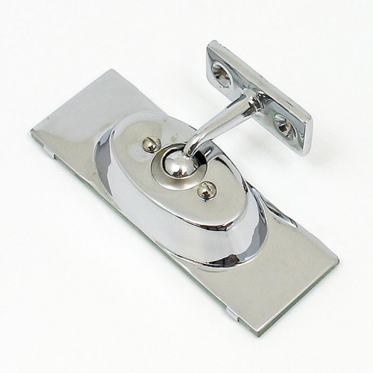 Dash mounted chrome mirror, original application Jaguar XK120. FLAT glass lens 113mm x 39mm, retained with top and bottom retaining lugs to plated back - the egde of the glass is NOT protected. Offered with a long or short stem. Short stem height 35mm to ball on mirror back. Long stem height 105mm. Two screw holes (at 30mm centres) in a mounting base of dimensions 48mm x 20mm.
