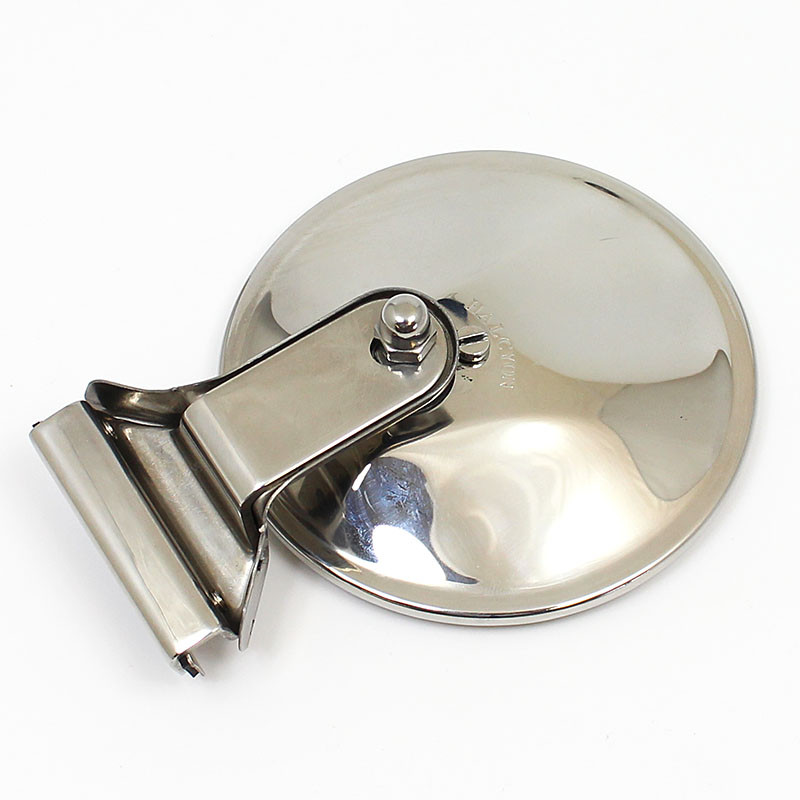 Polished stainless steel clip-on mirror with circular CONVEX glass, 102mm diameter.