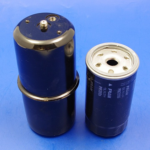 Long bypass oil filter/cleaner with a disposable modern cartridge which looks externally identical to the original Bedford 1042247 assembly. Canister 200mm tall x 90mm diameter with a 5mm raised jointed flange in the centre. Supplied with oil filter (with relief valve, rubber diaphragm and anti drain valve) though please order additional oil filters (part number FF17) if required. For fitting adaptor kit to 1/4" or 3/16" copper pipe (solder nipple) please order ZR1-CONV-FK. For clamp order ZR1-CONV-C This assembly replaces original filters - AC ZS1, Crossland 472, Fram PS824 & Wix 1T. Applications: Bedford 1938-50 6 cylinder trucks - Manufacturer's reference 1042247 Austin 2 & 5 ton petrol trucks 1940-45 - Manufacturer's reference 3H1113 Humber Snipe 1948 - Manufacturer's reference P55907A Commer Superpoise 6 cyl petrol 1939-51 - Manufacturer's reference K13654 Ford 4/5 ton V8 1945-56 - Manufacturer's reference ET6-18660 Rolls Royce Wraith 1938 - Manufacturer's reference EW1506 Land Rover & Rover - Manufacturer's reference 216322