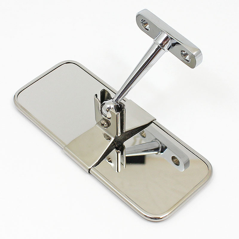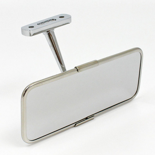 Highly polished stainless steel finish, 2 1/2" X 6" mirror head, with chrome plated mirror arm. Perfect replica interior mirror for early Cobras and other classic applications.