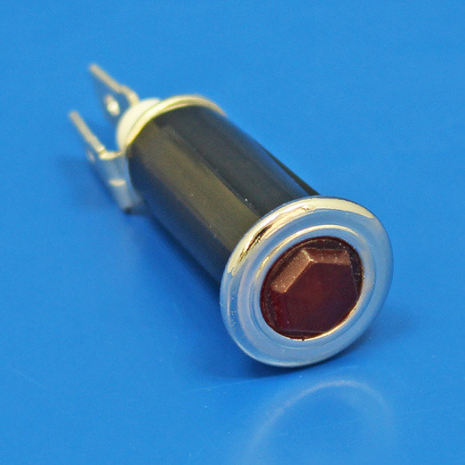 Dashboard warning light with hexagonal fronted lens and CHROME bezel. Equivalent to Lucas part numbers 38189, 38190, WL15 and SPB389. Made from the original tooling. Fitted with BA7S bulb holder and 12V 2W bulb as standard. 6.3mm push on/Lucar rear terminal connections. For replacement/alternative bulbs, please order B282B (6V), B281B (12V) or B283B (24V)